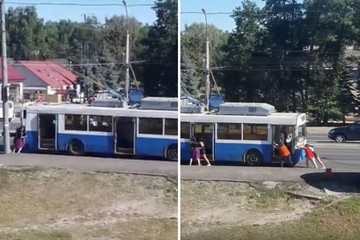 БЕЗ КОРОНАВИРУСАВ социальных сетях распространяется видео, снятое очевидцем в Брянске. На кадрах видно, что водитель троллейбуса пытается завести транспорт и общается с четырьмя девушками, которые его толкают. Спустя несколько секунд девушки перемещаются и стараются толкнуть троллейбус с другой стороны.