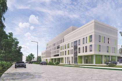 Фасады медучреждения выполнят в светлой цветовой гамме, козырек и стены возле входа станут ярким акцентом, выполненным в салатовом цвете. Площадь поликлиники составит около девяти тысяч квадратных метров.