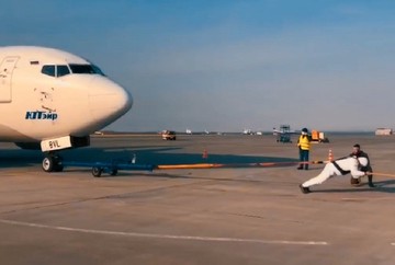 Самый сильный россиянин сдвинул самолет с места и попал на видео