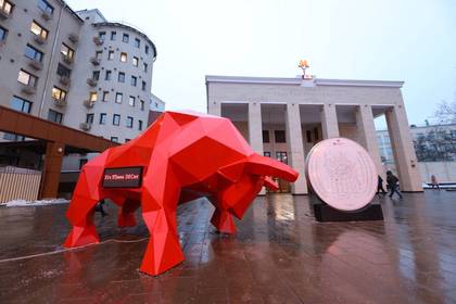 Статуя быка появилась у станции метро «Спортивная» в преддверии Нового года