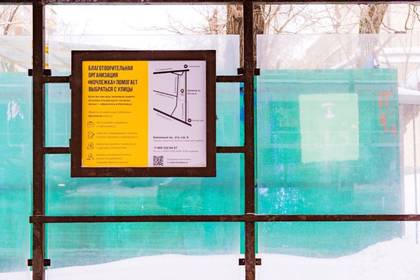 Плакаты с информацией о помощи бездомным появились на остановках рядом с вокзалами Москвы