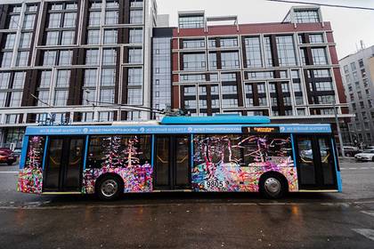 Арт-троллейбус с весенней тематикой начал курсировать по Москве