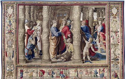 Гобелены по оригинальным эскизам Рафаэля создали в Брюсселе в середине XVI века. Папа Лев X в 1514 году поручил живописцу разработать проект с целью украсить Сикстинскую капеллу. Полотна вызвали большой интерес у монархов разных стран, которые начали заказывать их копии. В Мадриде выставлены ковры, приобретенные испанским королем Филиппом II.