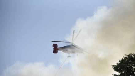 Затем ранг сложности пожара повысили до третьего. Для тушения огня привлекли два вертолета авиации.