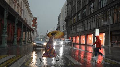 Ранее на территории столицы начался сильный ливень. Дождь обрушился на центр Москвы примерно в 12:30. Кроме того, тучи начали собираться в северной и восточной частях города. В городе слышны раскаты грома и видны молнии.