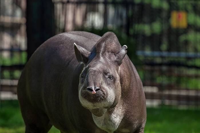 Тапир — это травоядное животное из отряда непарнокопытных. В природных условиях питается листьями лесных кустарников и водными растениями. Тапиры — прекрасные пловцы, умеют нырять и могут очень долго находиться под водой, а в случае опасности именно в ней ищут спасения.