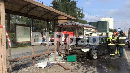 Появилось видео с места ДТП в Москве, где автомобиль врезался в автобусную остановку