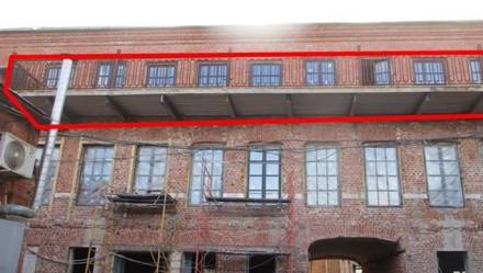 В ходе инспекционных мероприятий специалистами Госинспекции по недвижимости было установлено, что на уровне третьего этажа здания был незаконно возведен балкон из железобетонных конструкций площадью 35 квадратных метров.