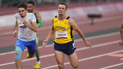 Украинский бегун Игорь Цветов отошел от российских спортсменов на несколько метров перед фотосессией на Паралимпийских играх в Токио.