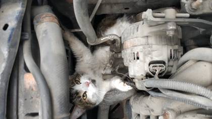 Застрявшую под капотом машины кошку освободили спасатели