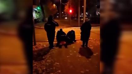 На кадрах видно, что задержанный лежит на земле, пока стражи порядка надевают на него наручники.