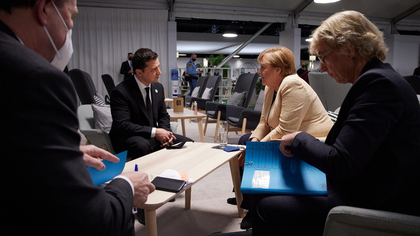 Президент Украины Владимир Зеленский встретился с исполняющей обязанности канцлера ФРГ Ангелой Меркель в рамках экологической конференции в Глазго. Встреча состоялась в понедельник, 1 ноября.