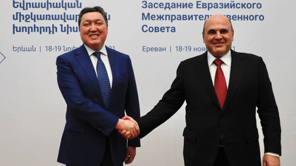 — Премьер-министр России Михаил Мишустин и премьер-министр Казахстана Аскар Мамин провели краткие переговоры на полях Евразийского межправительственного совета в Ереване, — отмечается в Telegram-канале ведомства.