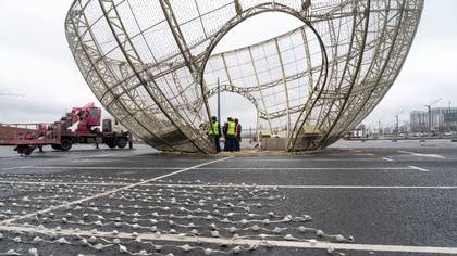 Монтаж огромного елочного шара на Поклонной горе завершается в Москве