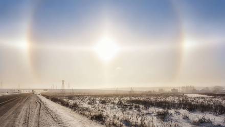 — «Гало-22» — наиболее часто видимое гало. В малом 22-градусном гало различима только часть цветов спектра (от красного до желтого), остальная часть выглядит белой из-за многократного смешения преломленных лучей. Паргелический круг и ряд других дуг гало почти всегда белые, — пояснил он на странице в социальной сети Instagram.