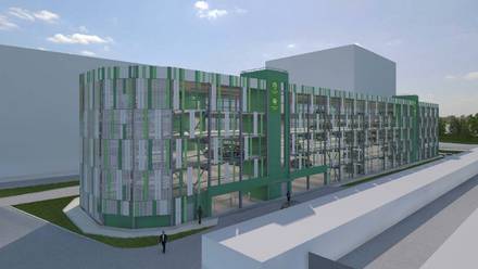 — Пятиэтажный паркинг получит пестрые интересные фасады, с преобладанием зеленого и белого оттенков. Для облицовки выбраны сэндвич-панели и алюминиевые кассеты, которые будут окрашиваться в заводских условиях. Возводимое как часть пересадочного узла, здание будет востребовано автомобилистами, которые захотят сменить вид транспорта, — заявил специалист.