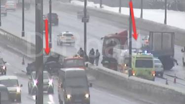 Грузовик и легковушка столкнулись на внешней стороне 100-го километра МКАД