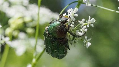 Бронзовки золотистые питаются молодыми плодами растений, древесным соком и другой растительностью, сообщает Комплекс городского хозяйства Москвы в своем Telegram-канале.