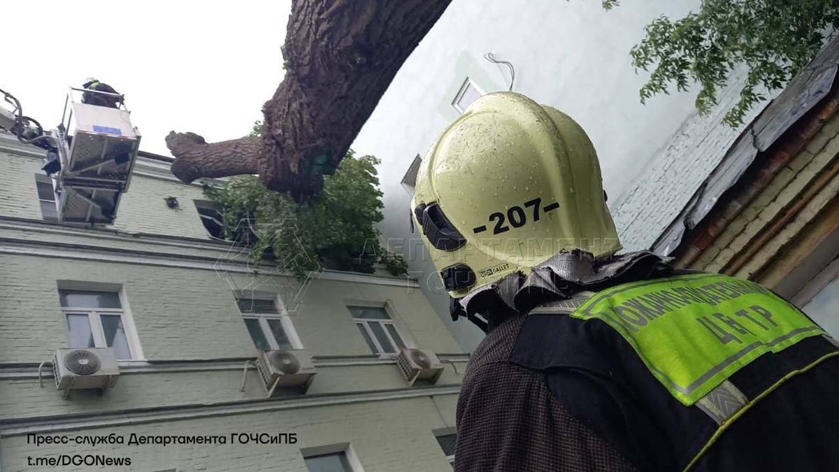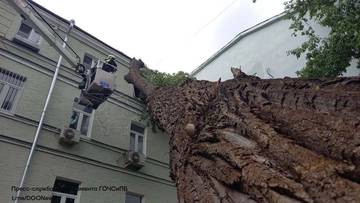 Дерево упало на жилой дом в центре Москвы