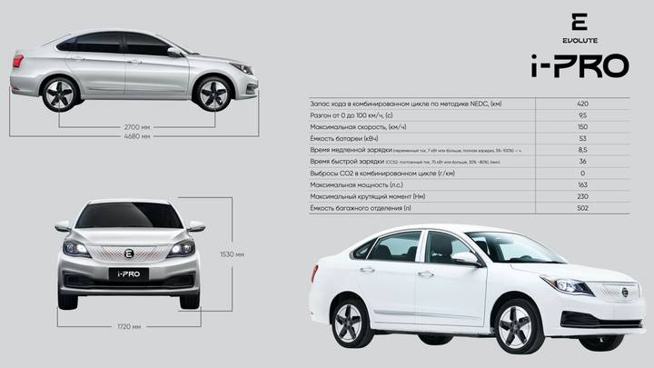 Тем не менее оценить характеристики Evolute можно уже сейчас. По данным «Автостата», в России зарегистрировано 16,5 тысячи электромобилей. Самая популярная модель — Nissan Leaf (11 765 штук). Именно с этой моделью уместно сравнить i-PRO.