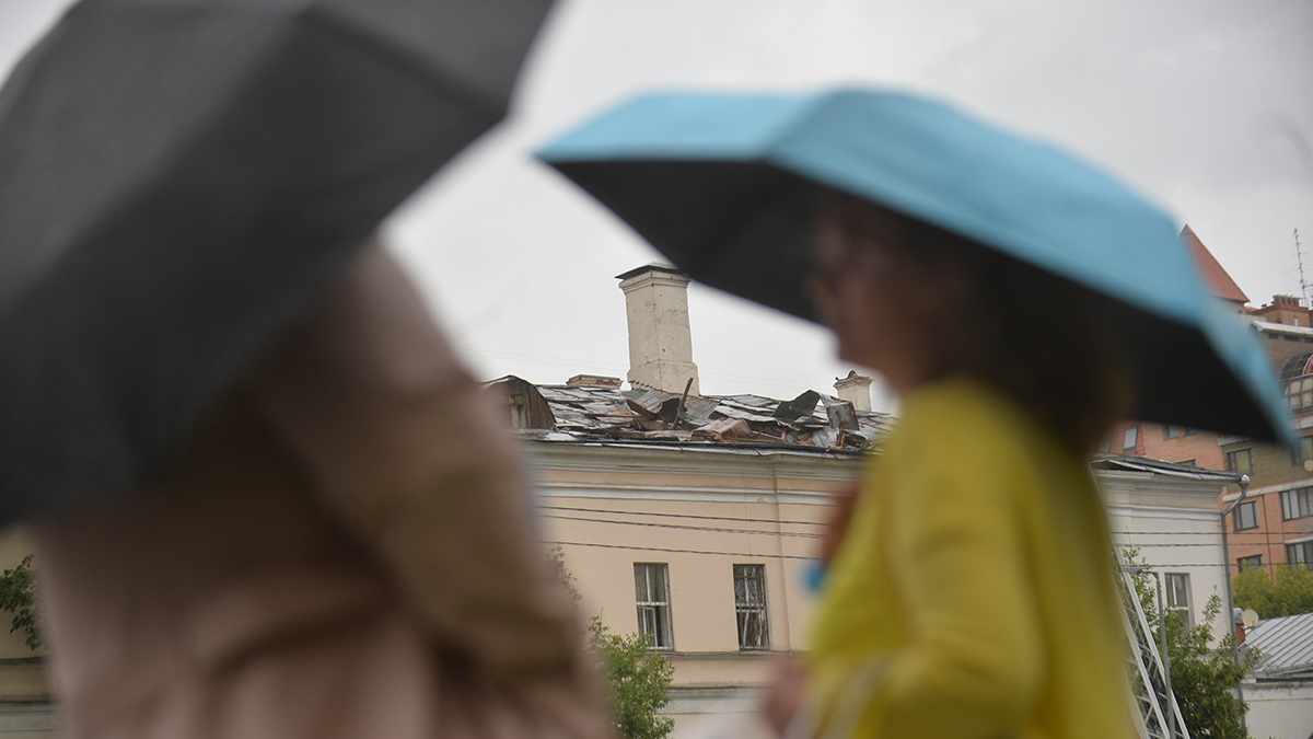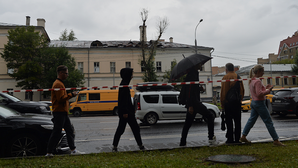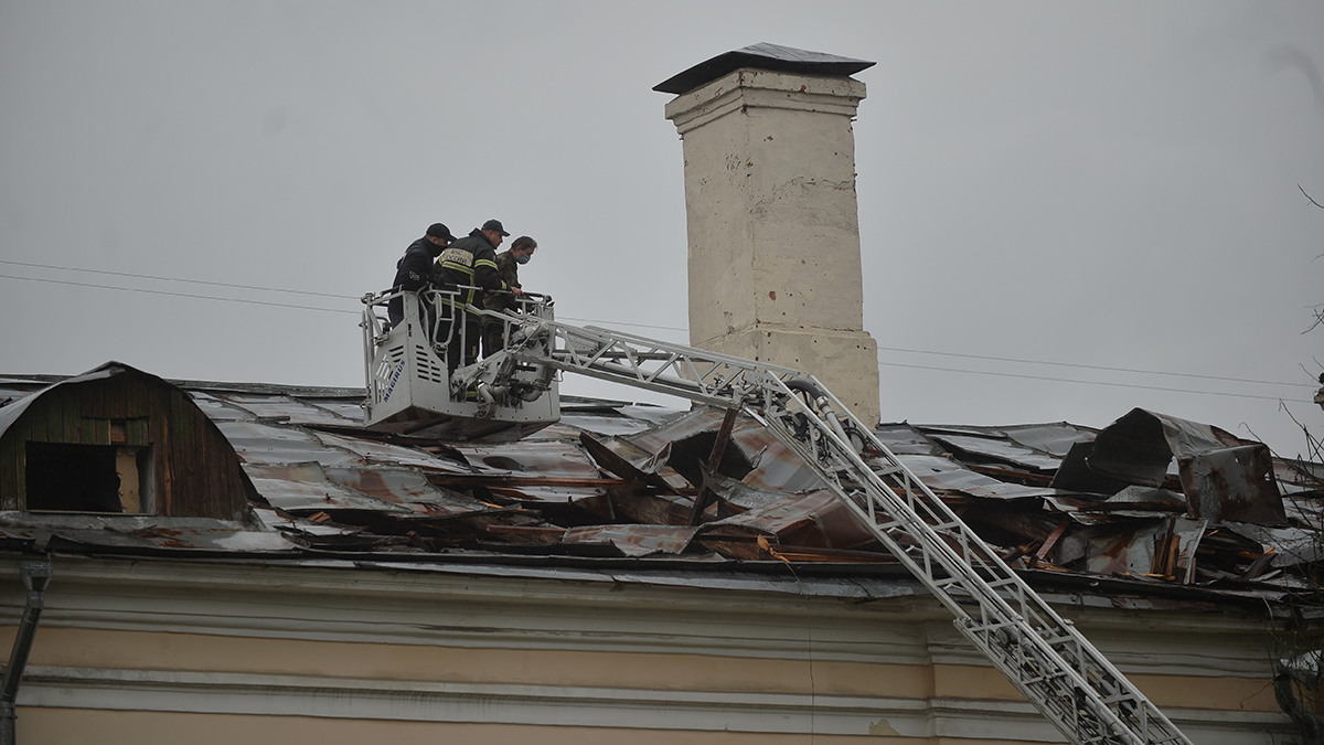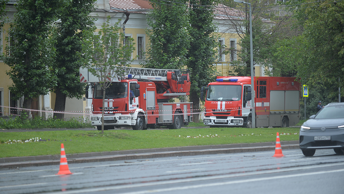 Устранение последствий удара беспилотника на Комсомольском проспекте