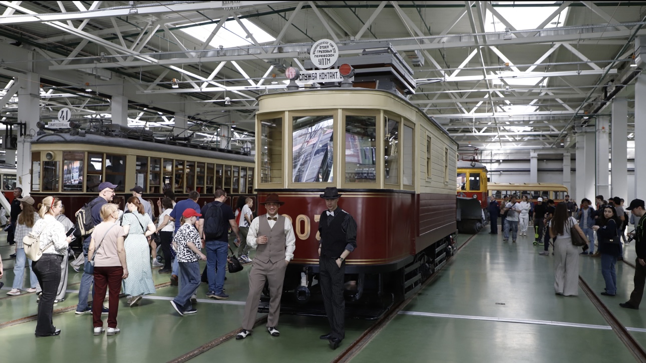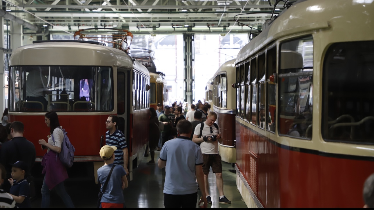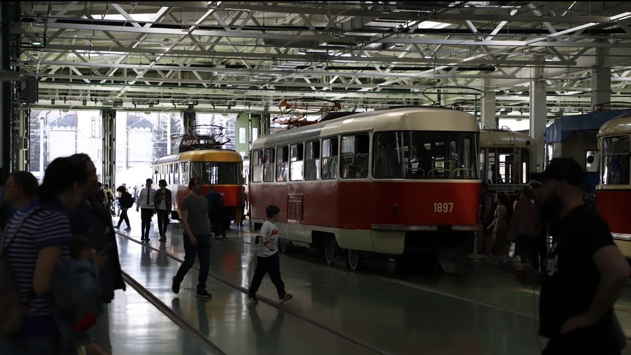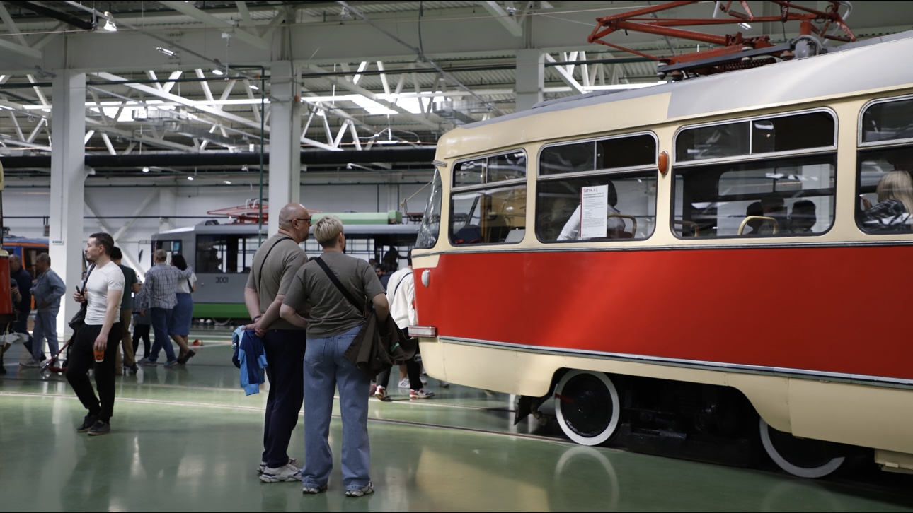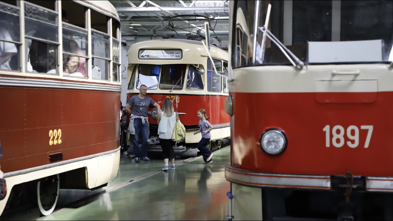 Парад исторических трамваев в трамвайном депо Апакова