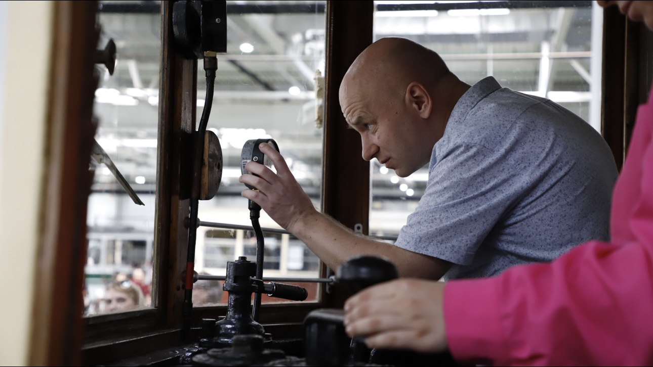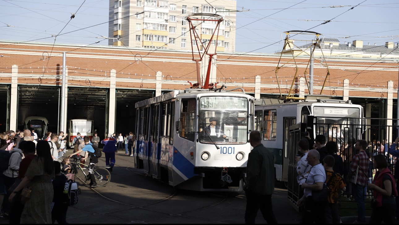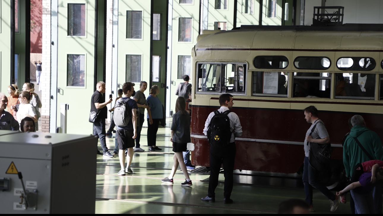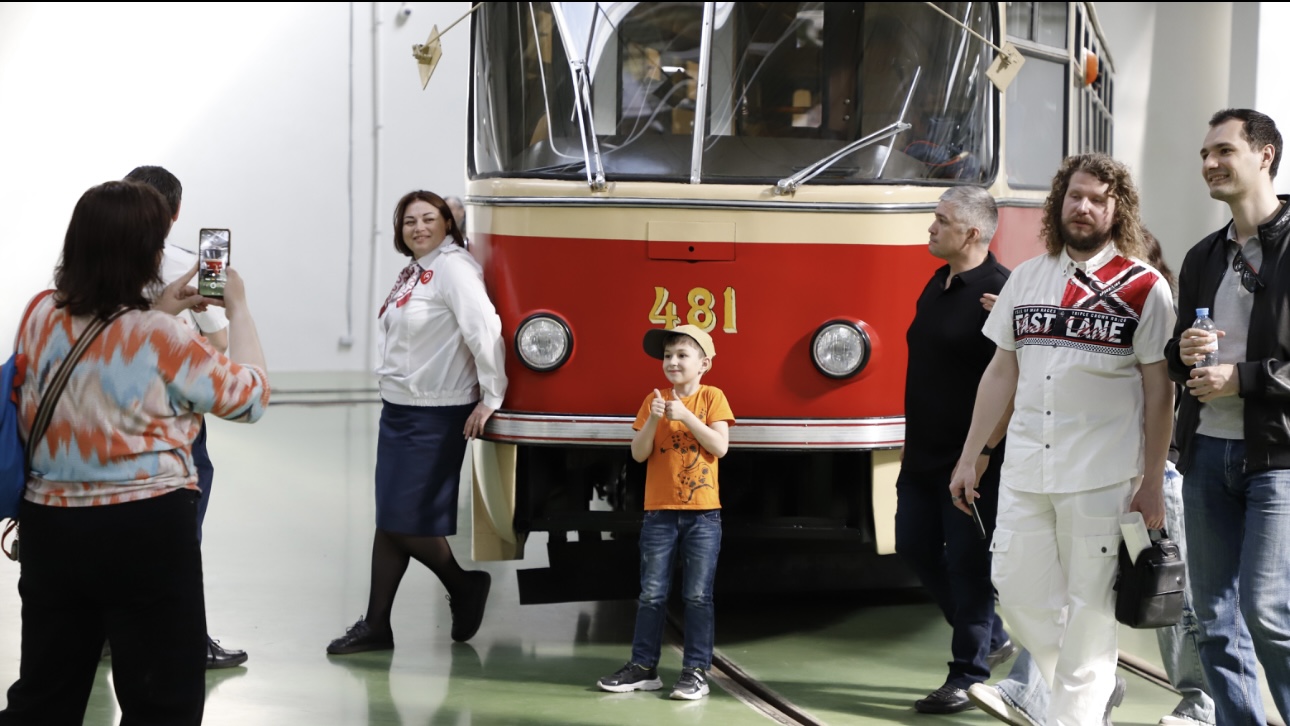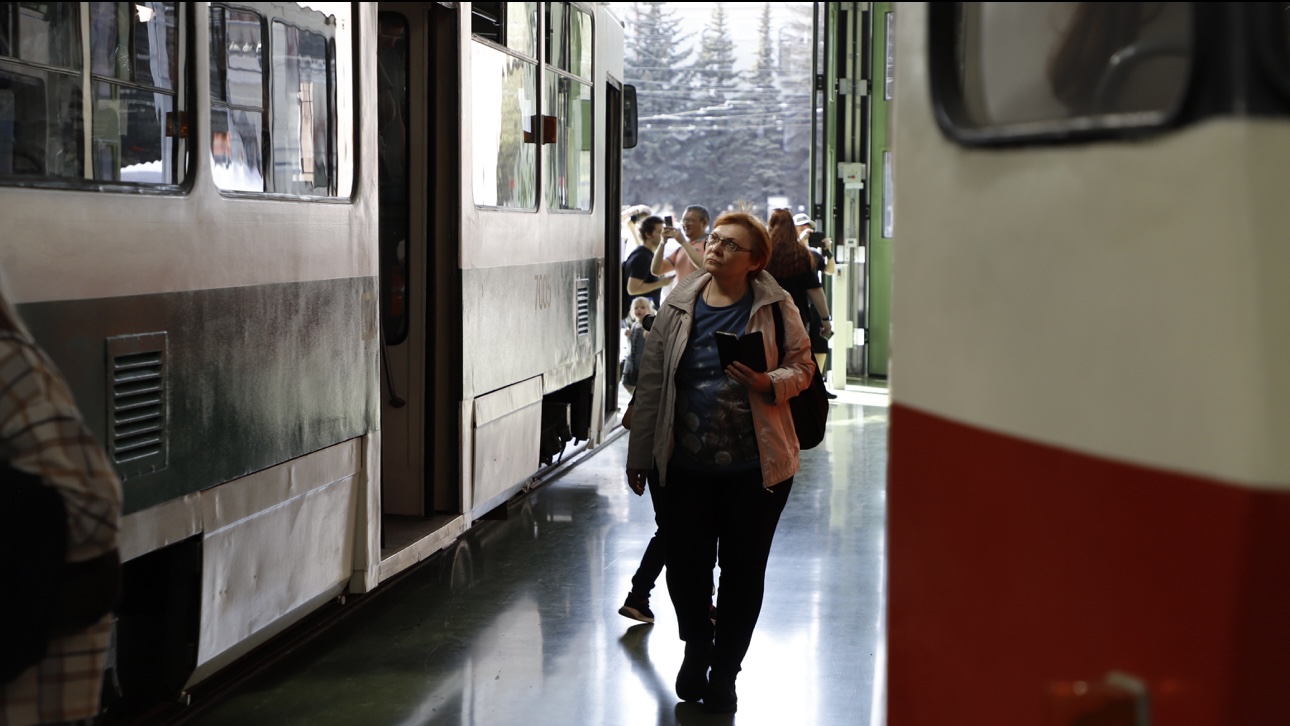 Парад исторических трамваев в трамвайном депо Апакова