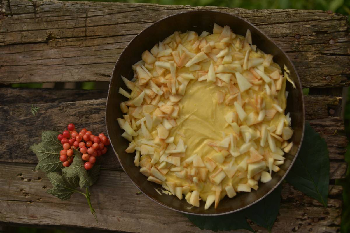 Классический рецепт, который не займет у вас много времени. Если хотите получить очень воздушный пирог, то взбивайте отдельно белки и желтки, добавив по половине сахара. Но в принципе можно и не разделять. Взбиваете яйца с сахаром, солью (соль необходима в любом десерте, она помогает оттенить сладость) и ванилью. Просейте муку и добавляйте ее небольшими порциями к яйцам. Добавьте также корицу. Вымесите тесто до однородности. Яблоки очистите от кожуры и семян, нарежьте на ломтики и выложите в специальную форму, смазанную маслом и посыпанную манкой. На яблоки вылейте тесто и поставьте на 35 минут в духовку, разогретую до 180 градусов.