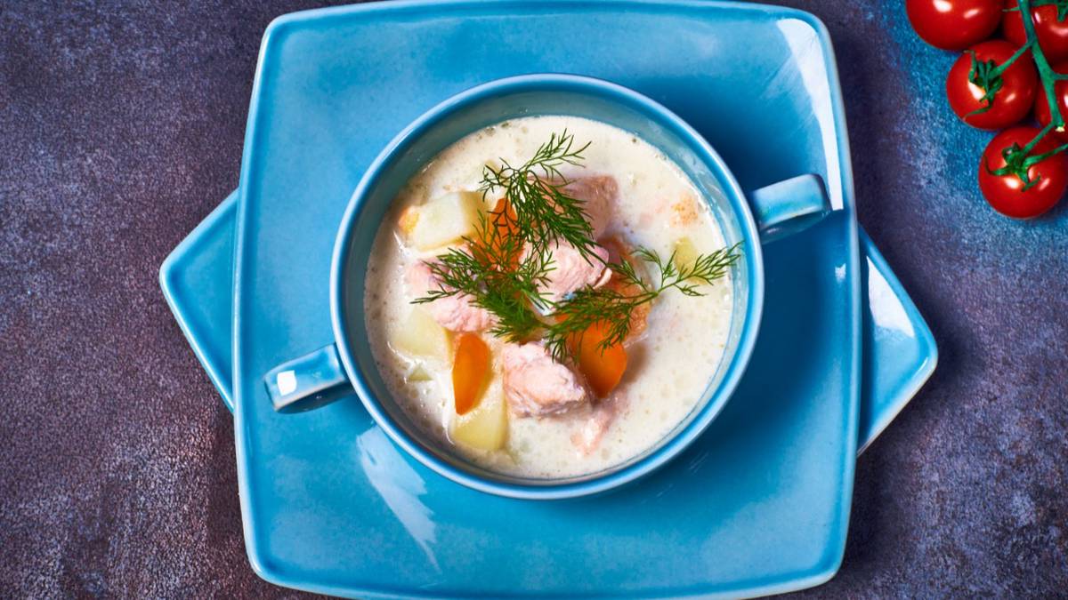 В идеале для этого супа надо брать рыбу с головой, но можно обойтись и без нее. Филе нарежьте на кубики, а хвост и хребет рыбы вместе с морковью, половиной всего картофеля и луком поставьте вариться в 1,5 литра воды. Остальной картофель нарежьте на кубики. Картофель, который варился с рыбой, измельчите вместе с морковью в пюре и добавьте сливки. В отдельной кастрюльке соедините бульон, пюре, добавьте картофель и филе рыбы. Посолите, поперчите и доведите до готовности.