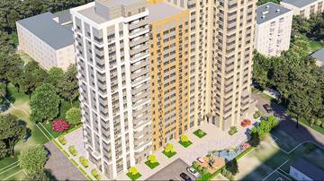 Жилой дом состоит из двух секций переменной этажности с подземным паркингом. Фасады будут вентилируемыми, их облицуют керамогранитной плиткой природных оттенков. На них установят корзины под кондиционеры. Лоджии остеклят.