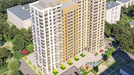 Придомовую территорию благоустроят и озеленят. Во дворе оборудуют детскую и спортивную площадки, разобьют газоны и цветники, высадят деревья и кустарники, также будет оборудована плоскостная парковка.