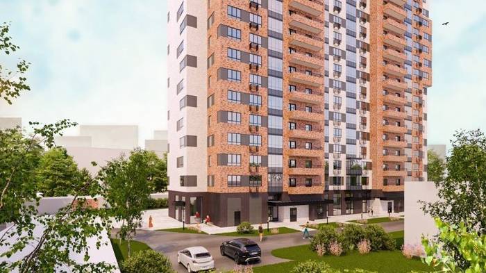 Новостройка будет переменой этажности по индивидуальному проекту с подземной автостоянкой. Фасады здания будут оформлены в природных оттенках, их облицуют клинкерной плиткой, керамогранитом и кирпичом. На них установят металлические корзины для кондиционеров. Входные группы будут оформлены витражным остеклением.