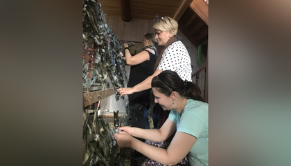 — Перебрав всевозможные техники плетения, мы придумали свою и даже создали обучающий ролик. Используем такие материалы, как оксфорд и спанбонд, что помогает сделать сети плотными. По отзывам солдат, бывали случаи, когда сброшенный с квадрокоптера боеприпас застревал в масксети и не взрывался, что спасало военнослужащих, — говорит Бузмакова.