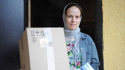 Социальный работник храма Преподобных Зосимы и Савватия в Гольянове Лилия Вострикова упаковывает гуманитарную помощь для беженцев / Фото: Пелагия Замятина / Вечерняя Москва
