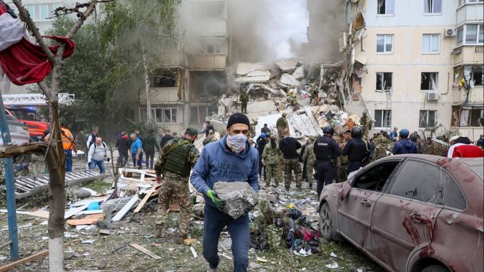 Спецоперация на Украине12 мая ВСУ нанесли воздушные удары по Белгородской области. После падения обломков сбитой ракеты обрушился подъезд десятиэтажного многоквартирного дома в Белгороде.