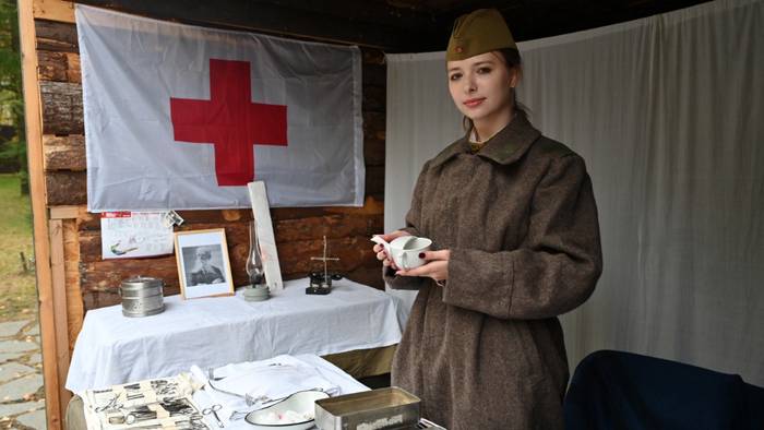 — Мы разучиваем с детьми название инвентаря военного госпиталя, — рассказывает реконструктор-медсестра Дарья Николаева. — Какие-то медицинские принадлежности остались похожими на современные, например, стетоскоп, а какие-то очень сильно изменились или вообще вышли из обихода. Если посетитель уже все знает, то можем предложить ему сделать операцию — достать осколки из тряпичного муляжа кожи.