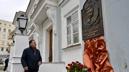 Председатель Российского детского фонда Дмитрий Лиханов на открытии доски в честь отца Альберта Лиханова / Фото: Дмитрий Дубинский / Вечерняя Москва