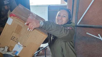 Руководитель фонда «Ева-Флоренсия» Инга Лыбо загружает в машину очередную партию гуманитарного груза / Фото: Личный архив