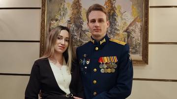 На встречу в Большой театр участник контртеррористической операции на Северном Кавказе, военной операции в Сирии и специальной военной операции на Украине Сергей Карелин пришел с женой Екатериной