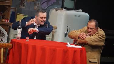 Александр Носик в роли Саввы Игнатьевича и Владимир Стержаков (Хоботов) в спектакле «Покровские ворота»
