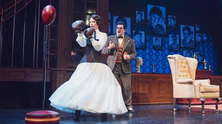 Авантюрная детективно-комедийная история в новой интерпретации. На первый план выходит обычно незаметная пожилая миссис Хадсон. В этой постановке она превращается в остроумную девушку, которая попадает в круговорот событий. Обновленными амплуа порадуют Холмс и Ватсон, профессор Мориарти, Бэрримор и сэр Генри. Зрителей ждет настоящий разрыв шаблонов, разудалые песни, ирландские пляски и увлекательный сюжет о собаке Баскервилей.