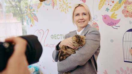 Председатель Комитета общественных связей и молодежной политики города Москвы Екатерина Драгунова держит на руках кошку из приюта / Фото: Пресс-служба Комитета общественных связей и молодежной политики Москвы