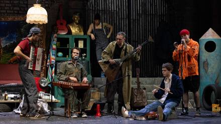 — Огромное значение в нашей работе играет музыка. Специально для нашей постановки были написаны песни на стихи Некрасова, а чтобы найти особое индустриальное звучание, были созданы уникальные инструменты, под аккомпанемент которых прозвучат тексты. Наш спектакль — это попытка всмотреться в окружающую реальность и проверить, что изменилось за 150 лет с момента публикации поэмы, а что осталось неизменным.