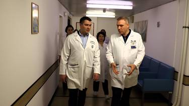 Главврач госпиталя ветеранов войн № 3 Георгий Мелконян показывает госпиталь префекту СВАО Олегу Соболеву