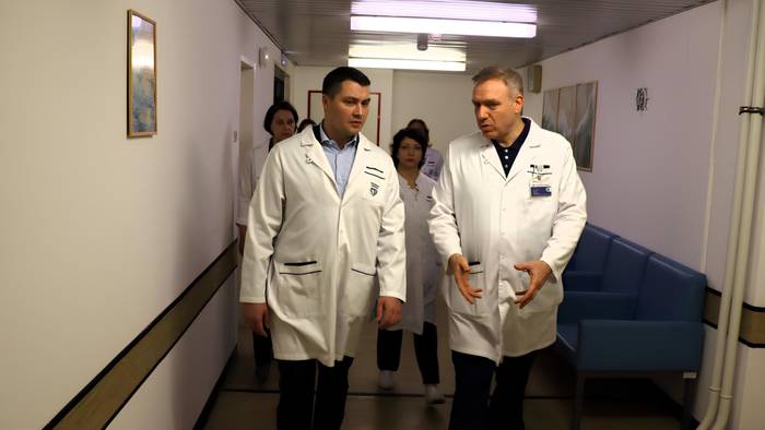 Главврач госпиталя ветеранов войн № 3 Георгий Мелконян показывает госпиталь префекту СВАО Олегу Соболеву / Фото: Префектура СВАО