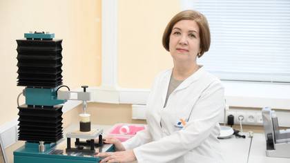 Ученый секретарь НИИ хлебопекарной промышленности Ольга Тюрина отрезает небольшой кусочек пышного «Нарезного» батона и кладет его на площадку текстуроанализатора СТ-2. Прибор был создан 10 лет десять лет назад. Он измеряет черствость хлеба в цифрах. Черствость — характеристика очень индивидуальная. Кто-то скажет, что хлеб — свежий, а кто-то не согласится, но с цифрами уже не поспоришь, как объяснила нам Ольга Евгеньевна.