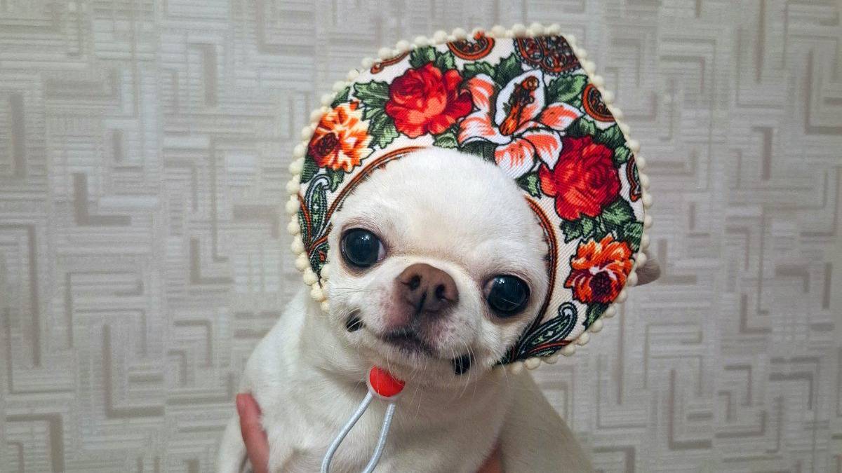 Собачка по кличке Зуля в кокошнике, который сшила ее хозяйка, москвичка Людмила Жданова / Фото: Людмила Жданова