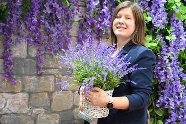 Представитель агрофирмы из Республики Крым Татьяна Федорова рассказывает на 32-й Международной выставке туризма и индустрии гостеприимства об уникальных лавандовых полях, которые привлекают отдыхающих со всей страны / Фото: Пелагия Замятина / Вечерняя Москва