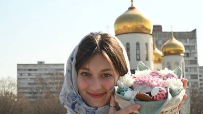 Накануне Пасхи Кира Наместникова пришла в храм, который расположен в Новогирееве, чтобы освятить кулич и яйца / Фото: Пелагия Замятина / Вечерняя Москва