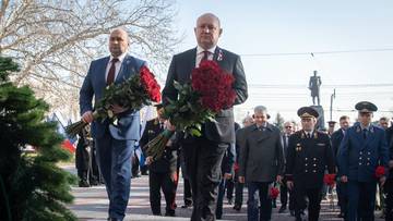 Церемония возложения венка и цветов к Мемориальной стене в память о героической обороне города Севастополя 1941-1942 годов: губернатор города Севастополя Михаил Развожаев и председатель Законодательного собрания Севастополя Владимир Немцев